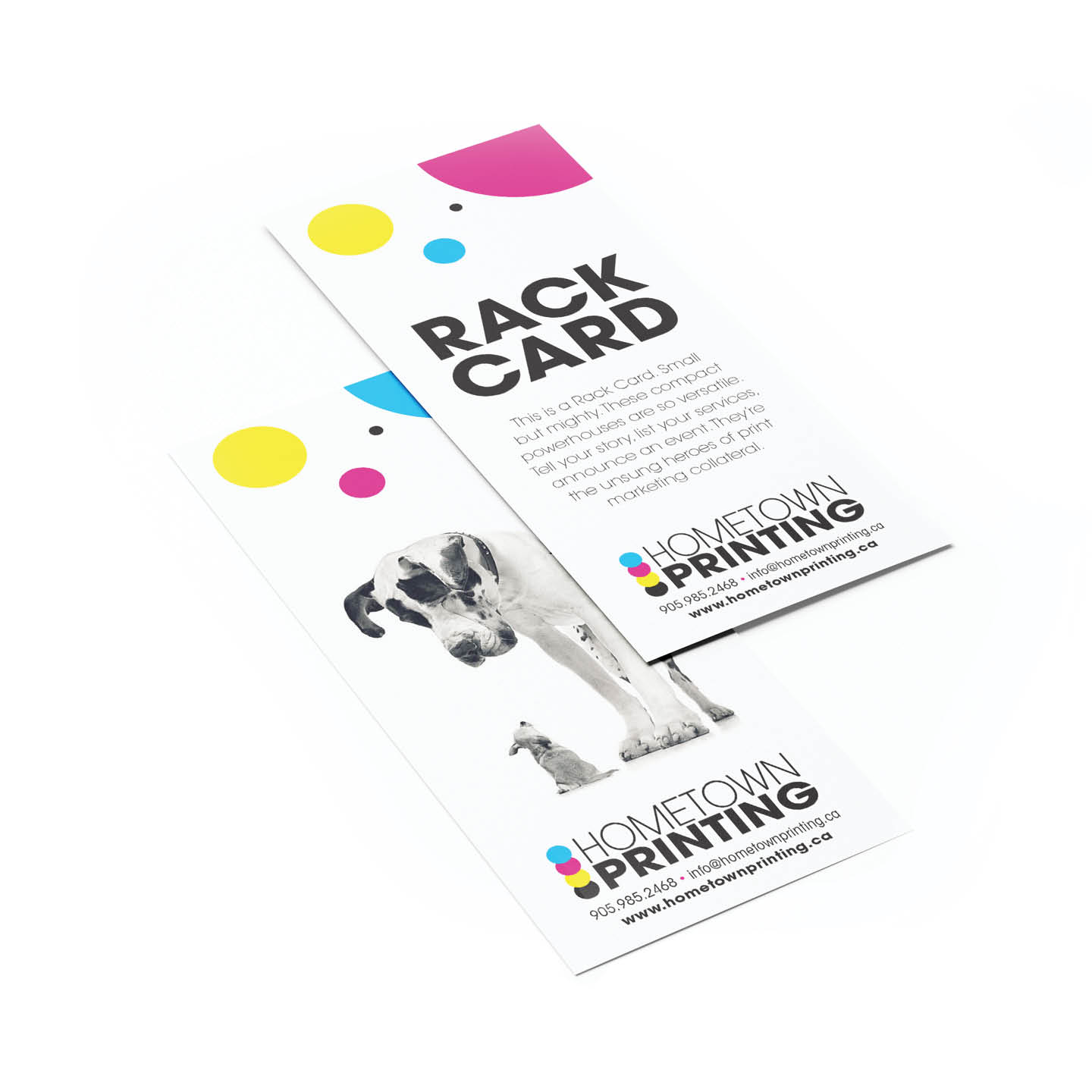 Powerful Messages, Pocket-Sized Impact! Custom rack cards are compact, but with the right design they command attention. Choose from a variety of paper stock options paired with full colour printing, and your unique message comes to life – with your brand image at the heart of the message. Choose single or double-sided printing for added visibility. Rack cards are a classic go-to for promoting your business by telling your story, displaying your services, or promoting an event or sale. Strategically position them in prominent locations such as conference halls, store displays, or office waiting areas to boost foot traffic. Their grab-and-go size ensures your contact details stay in hand. We will design your rack cards for maximum impact.